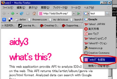 Firefoxの検索窓はOpenSearch descriptionファイルを設置してsearch.htmlに飛ぶようにしてるだけ。Songbirdの検索窓からも同様にアクセスできる。 それとSongbird専用キーアサインとして、検索画面の通常再生(aキーかマウスクリック)の後dキーで最後に再生し…
